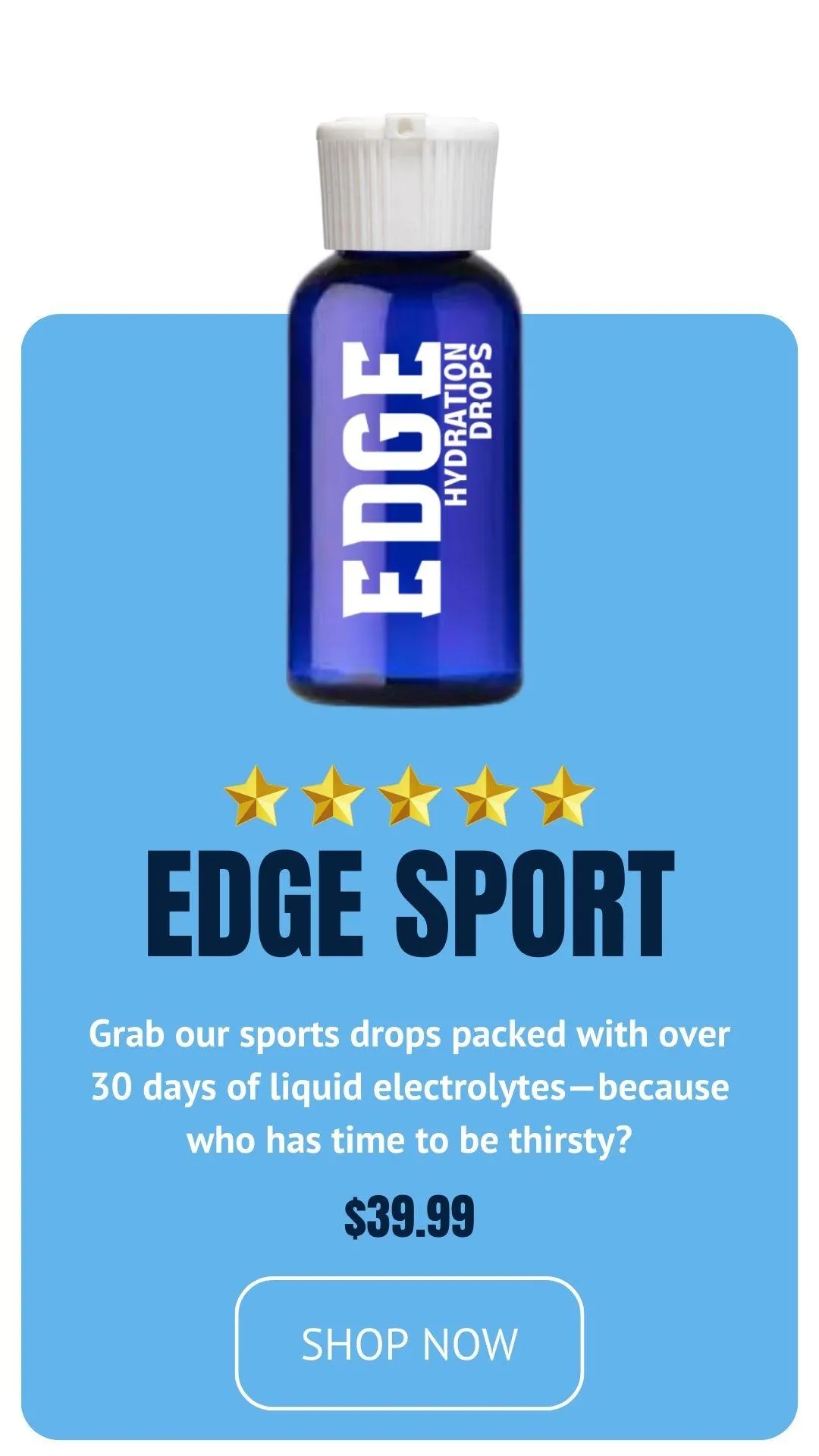 With EDGE Hydration your options are limitless. Simply add 10 Drops of our organic sugar free concentrate of ocean mind electrolytes to your favorite healthy beverage for unbeatable hydration.